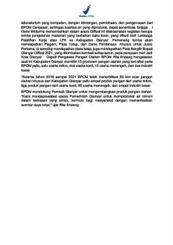 BPOM Denpasar, sehingga kualitas air yang diproduksi, dapat senantiasa terjaga. I