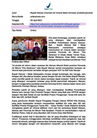 Judul : Bupati Gianyar luncurkan air mineral dalam kemasan produksi perumda