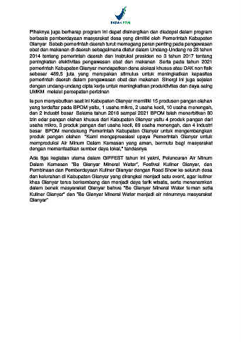 Kuliner Gianyar” dan ”Be Gianyar Mineral Water menjadi air minumnya masyarakat