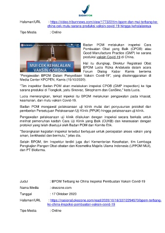 Halaman/URL : https://nasional.okezone.com/read/2020/10/16/337/2294570/bpom-terbang-