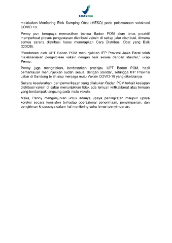 memperkuat proses pengawasan distribusi vaksin di setiap jalur distribusi, dimana