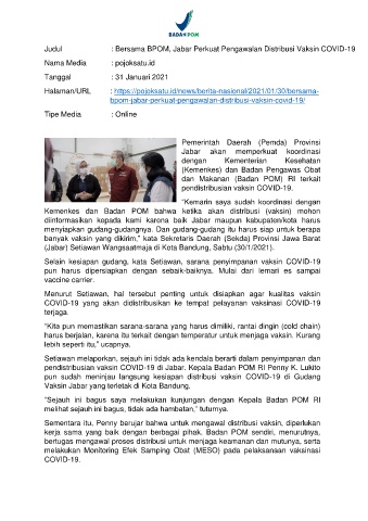 Judul : Bersama BPOM, Jabar Perkuat Pengawalan Distribusi Vaksin COVID-19