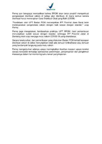 Penny pun berupaya memastikan bahwa BPOM akan terus proaktif memperkuat