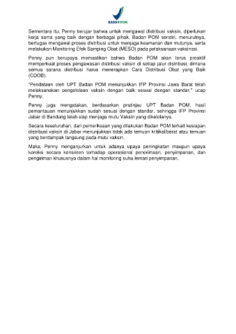 Sementara itu, Penny berujar bahwa untuk mengawal distribusi vaksin, diperlukan