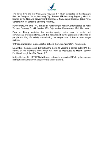 Not just let go of it, UPT BPOM will also continue to supervise IFP along the vaccine
