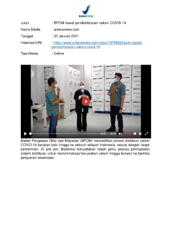 Judul : BPOM kawal pendistribusian vaksin COVID-19