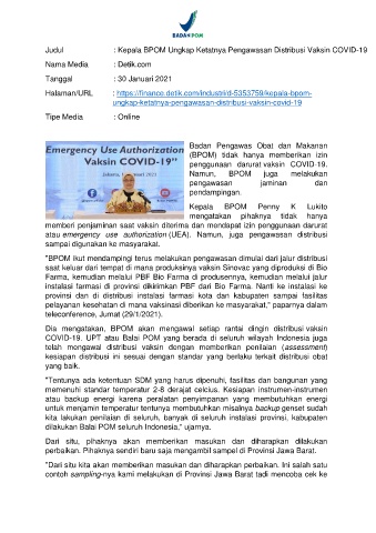 Judul : Kepala BPOM Ungkap Ketatnya Pengawasan Distribusi Vaksin COVID-19
