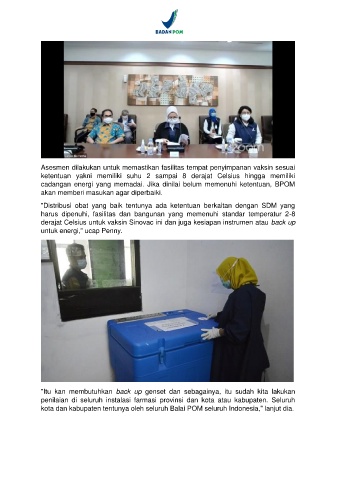 Asesmen dilakukan untuk memastikan fasilitas tempat penyimpanan vaksin sesuai