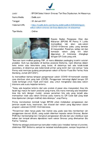 Judul : BPOM Sebut Vaksin Sinovac Tak Bisa Dipalsukan, Ini Alasannya