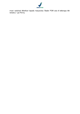 maan vaksinasi diberikan kepada masyarakat. Badan POM ada di beberapa titik tersebut," ujar Penny.