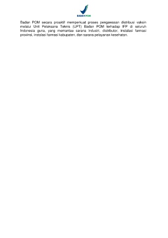 melalui Unit Pelaksana Teknis (UPT) Badan POM terhadap IFP di seluruh