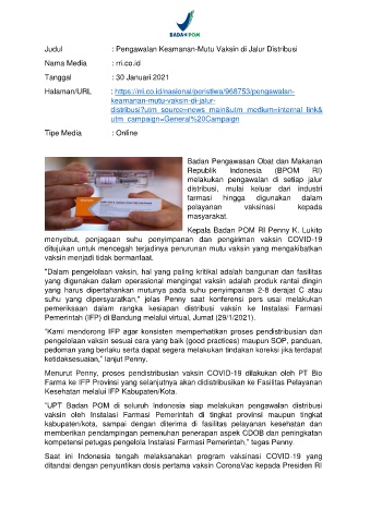 Judul : Pengawalan Keamanan-Mutu Vaksin di Jalur Distribusi