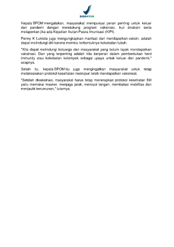 Selain itu, kepala BPOM itu juga mengingatkan masyarakat untuk tetap