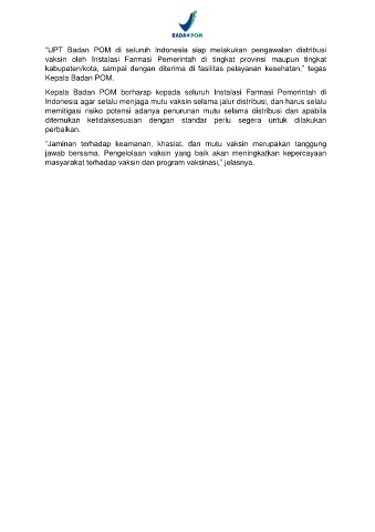 “UPT Badan POM di seluruh Indonesia siap melakukan pengawalan distribusi