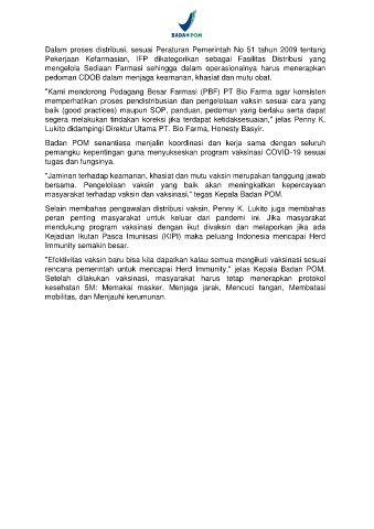 masyarakat terhadap vaksin dan vaksinasi," tegas Kepala Badan POM.