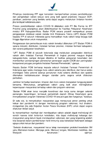 kepada IFP di seluruh Indonesia guna memastikan mutu vaksin tetap terjaga baik