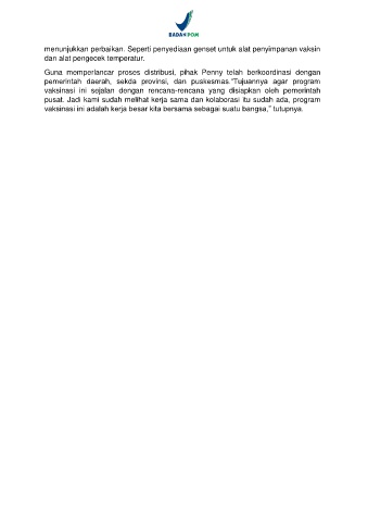 menunjukkan perbaikan. Seperti penyediaan genset untuk alat penyimpanan vaksin