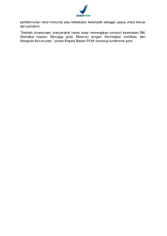 Menjauhi kerumunan.” pesan Kepala Badan POM menutup konferensi pers.