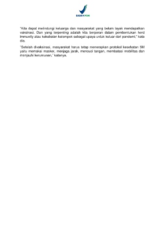 immunity atau kekebalan kelompok sebagai upaya untuk keluar dari pandemi,” kata
