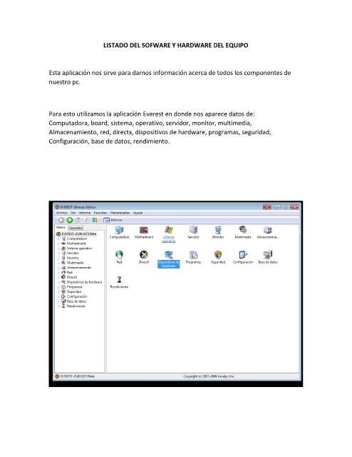 LISTADO DEL SOFWARE Y HARDWARE DEL EQUIPO