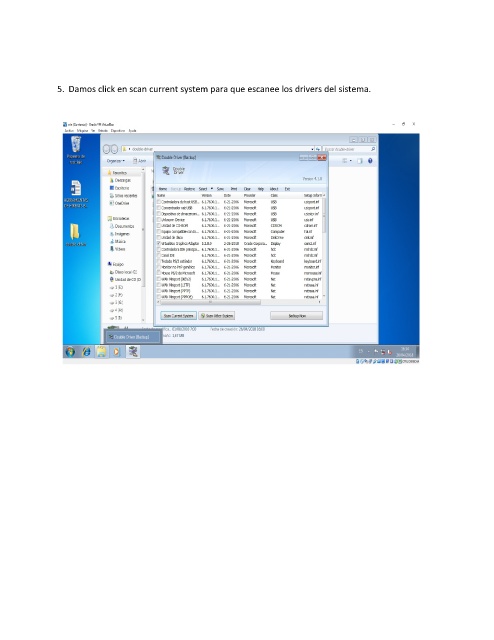 5. Damos click en scan current system para que escanee los drivers del sistema.