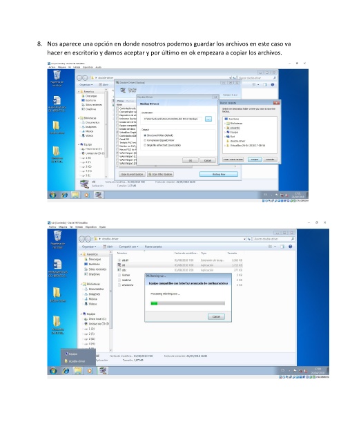 8. Nos aparece una opción en donde nosotros podemos guardar los archivos en este caso va hacer en escritorio y damos aceptar y por último en ok empezara a copiar los archivos.