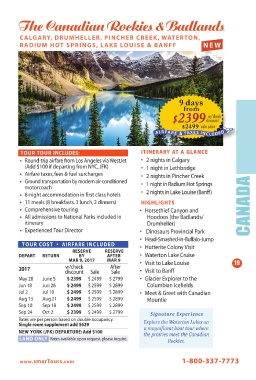 • 11 meals (8 breakfasts, 1 lunch, 2 dinners) HIGHLIGHTS CANADA