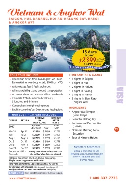 • Accommodations at deluxe and first class hotels • 2 nights in Hanoi ASIA