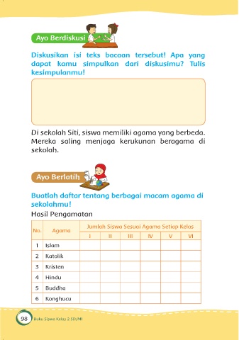 Di sekolah Siti, siswa memiliki agama yang berbeda.