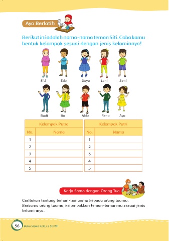 Bersama orang tuamu, kelompokkan teman-temanmu sesuai jenis