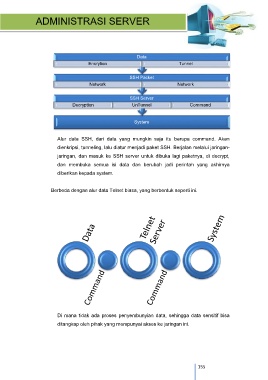 Alur data SSH, dari data yang mungkin saja itu berupa command. Akan