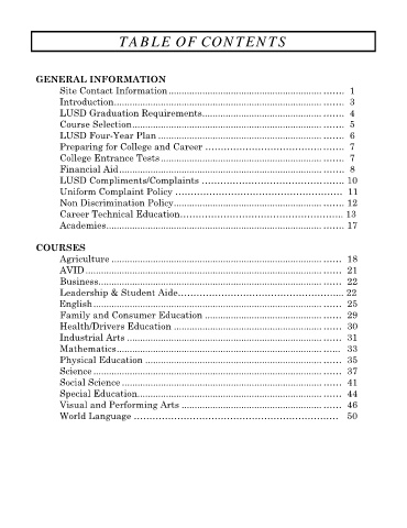 LUSD Compliments/Complaints ………………………………… ……. 10