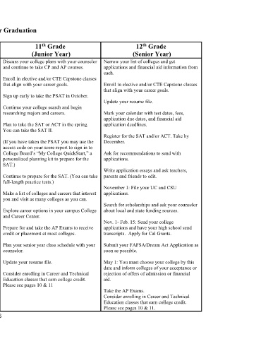 10 grade Visit colleges while they are in session. credit or placement at most colleges. transcripts. Apply for Cal Grants.