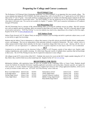 as early as October of their senior year. ACT/SAT “SAT Plus Writing” school codes are: