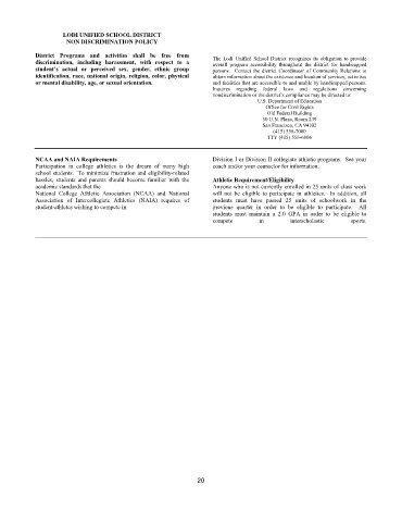 District Programs and activities shall be free from The Lodi Unified School District recognizes its obligation to provide