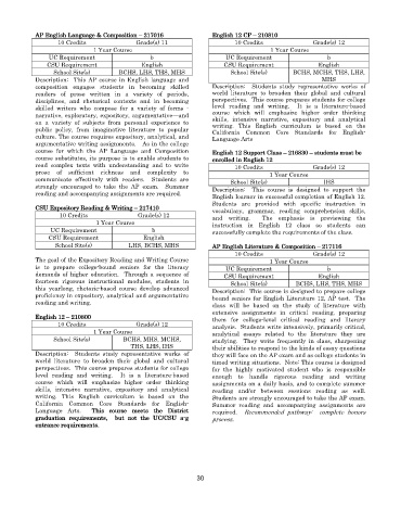 Language Arts. This course meets the District required. Recommended pathway: complete honors
