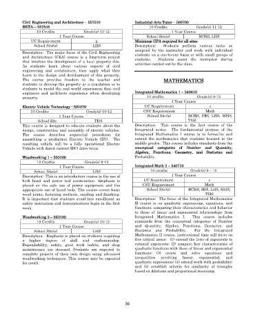 Woodworking 3 – 553180 Integrated Mathematics I. This course includes