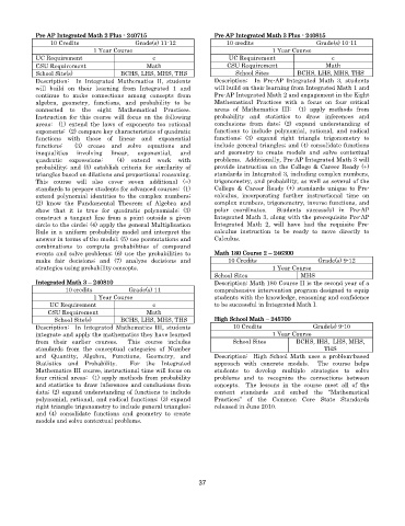 Integrated Math 3 – 240810 Description: Math 180 Course II is the second year of a