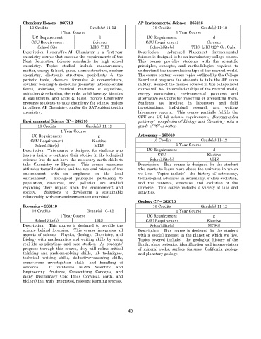 Chemistry Honors – 260712 AP Environmental Science – 265216