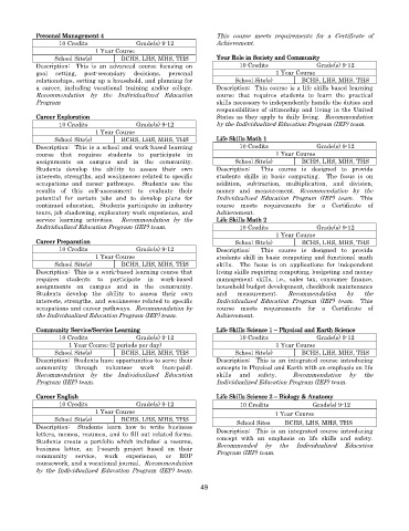 a career, including vocational training and/or college. Description: This course is a life skills based learning