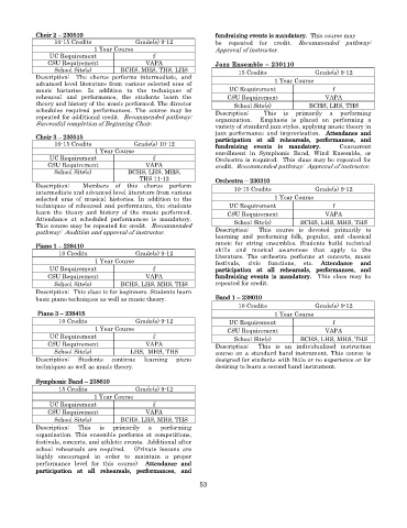schedules required performances. The course may be Description: This is primarily a performing