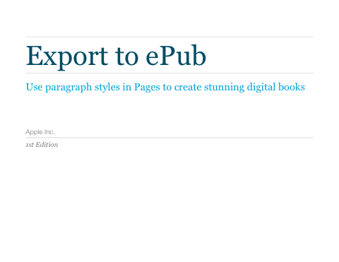 Export to ePub Use paragraph styles in Pages to create stunning digital books Apple Inc. 1st Edition