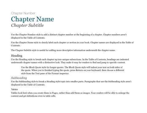 Use the Chapter Name style to clearly label each chapter or section in your book. Chapter names are displayed in the Table of Contents.