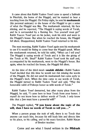 entire meaning of our lives in this world. in Mezritsh, the home of the Maggid, and he wanted to hear a