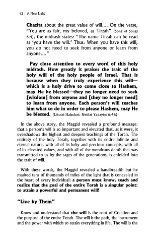 and the power with which to attain everything in life. The will is the testing you” (Wisdom of Rabbi Nachman 300). That being so, our
