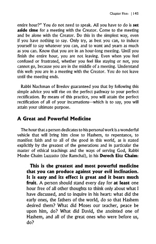 and in this way every person will reach a great level. Nachman himself, who prescribed the hour of hitbodedut, wrote