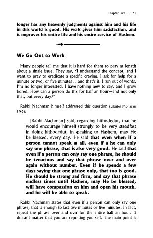 wraps itself in mitzvot, and it works on every person until his final We Go Out to Work