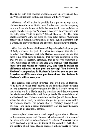am speaking about here. That is because Hashem wants to rescue for a person’s prayer be complete, he also needs wholeness of faith.