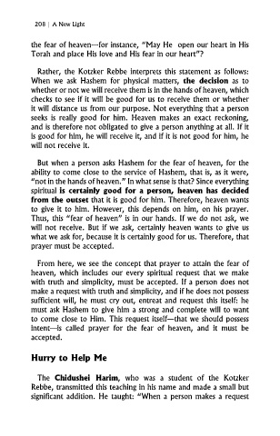 it will distance us from our purpose. Not everything that a person the fear of heaven.” The Chidushei Harim states that Hashem will