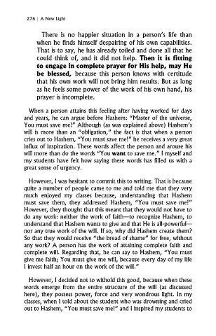 tell Hashem, “You must,” the essence of our request is to say to out to Hashem, “You must save me!” and I inspired my students to length, the essence of free choice lies in the will).